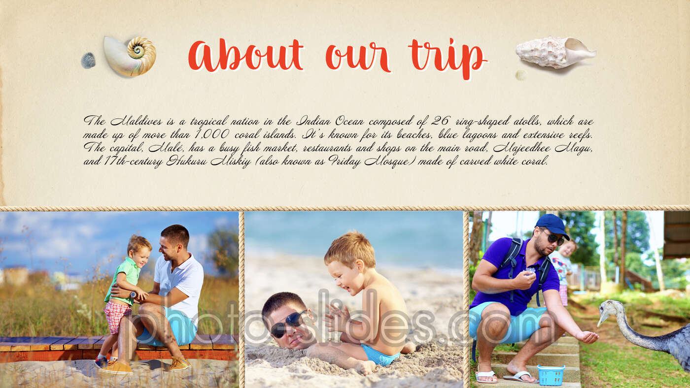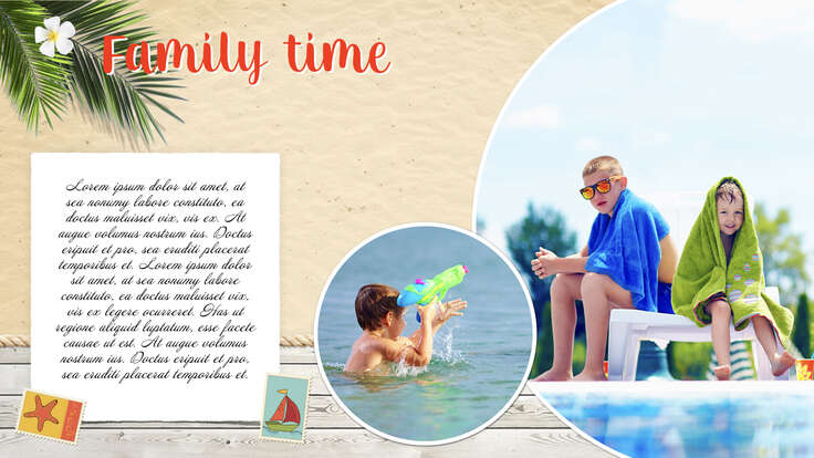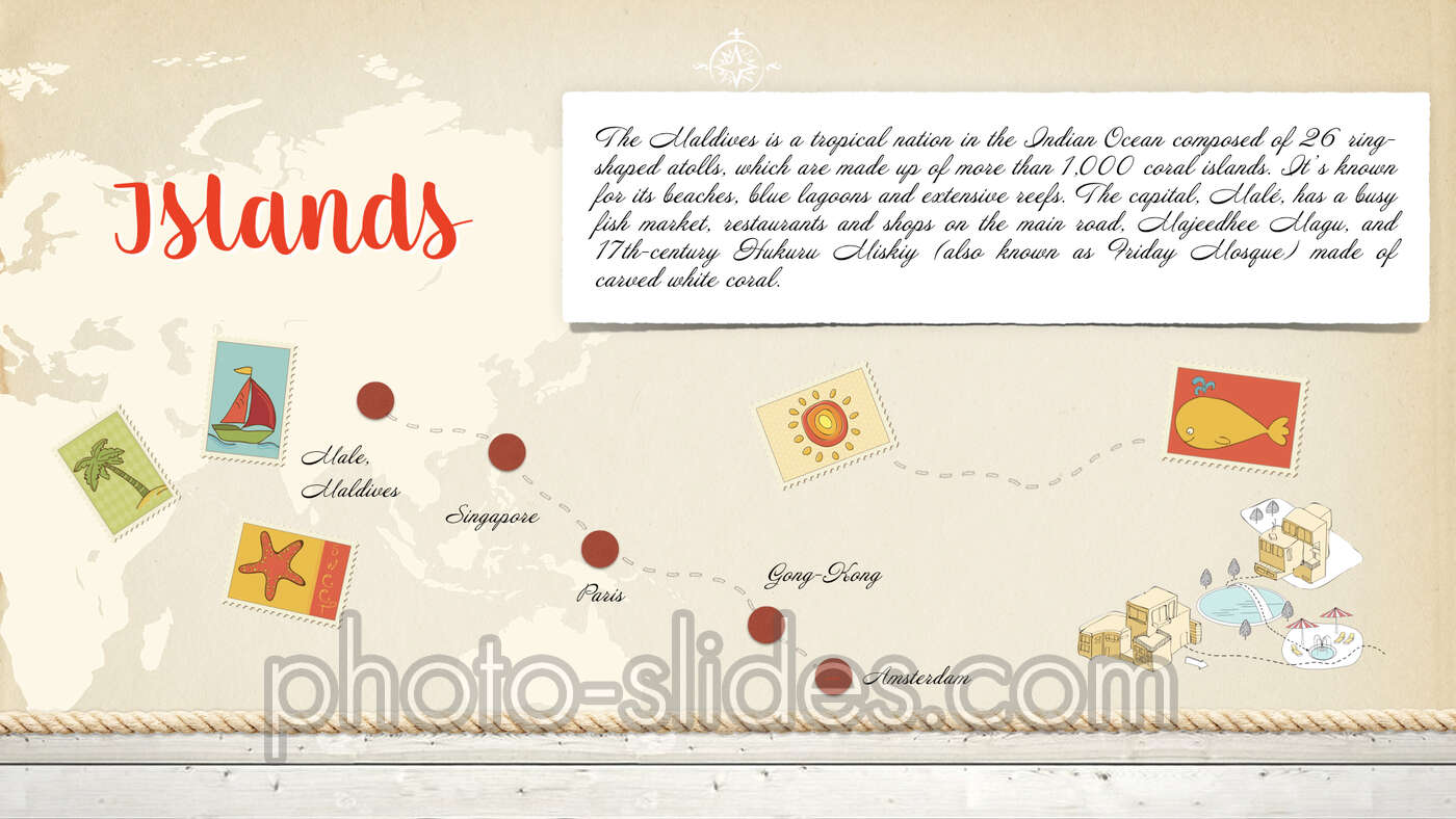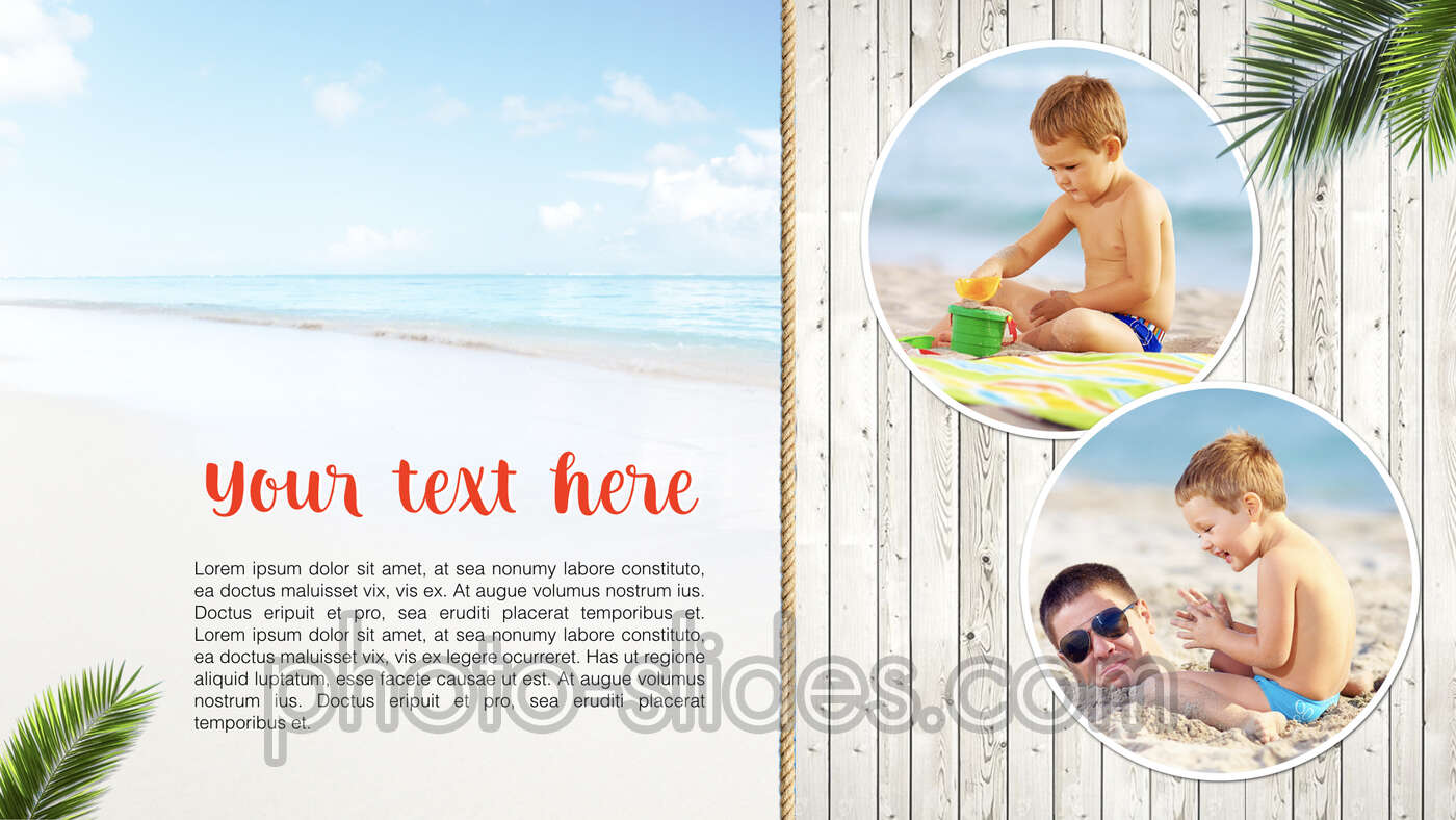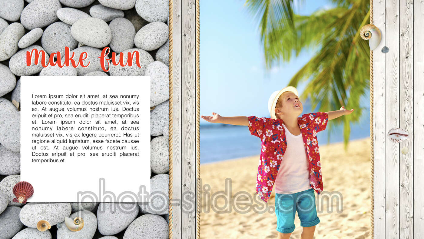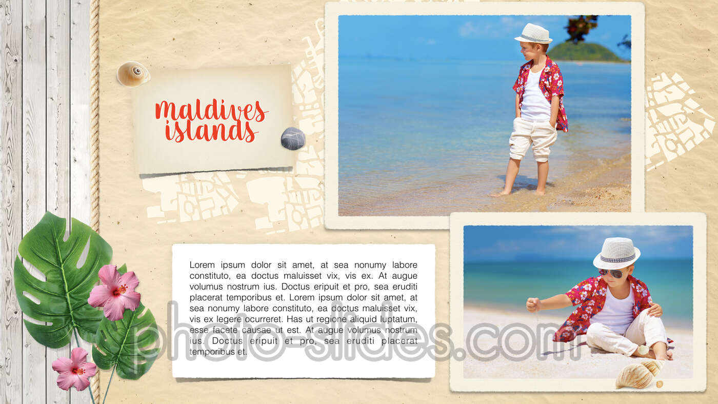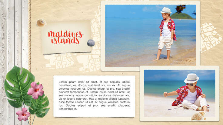 Suitable for those who want to show and save their photos in a simple yet spectacular way. All you need is to place your photos into the frames on the presentation slides. The presentation includes unique pictures and attractive objects animations.