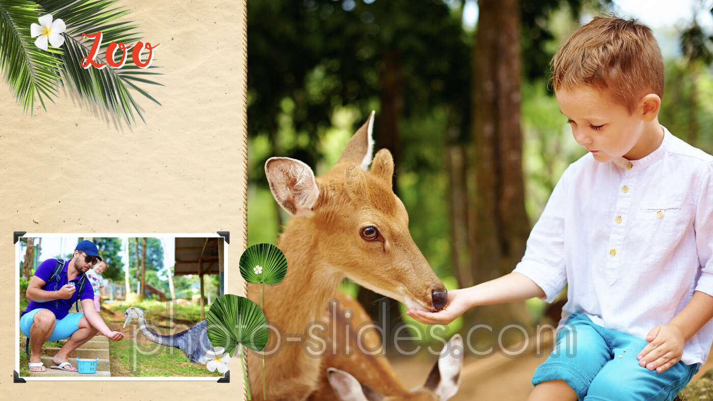 KeyNote Presentation document file "Happy Holiday" with fully complete slides for your photos, attractive slide and object animations, text and media placeholders designed by professionals. Documentation on using the presentation in different ways: screen viewing, social video sharing, printing cards, books or posters. Links to additional fonts or other resources to download and use them for FREE.