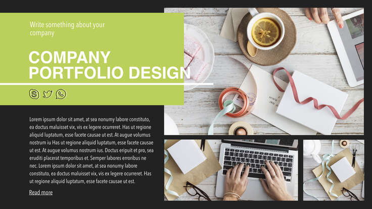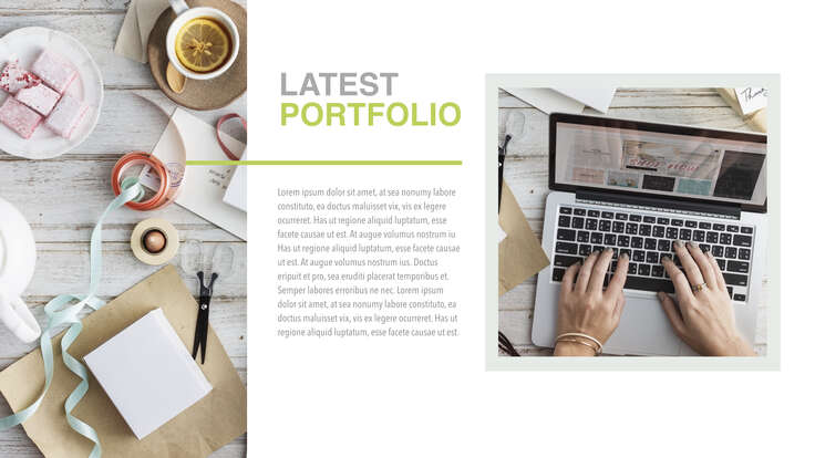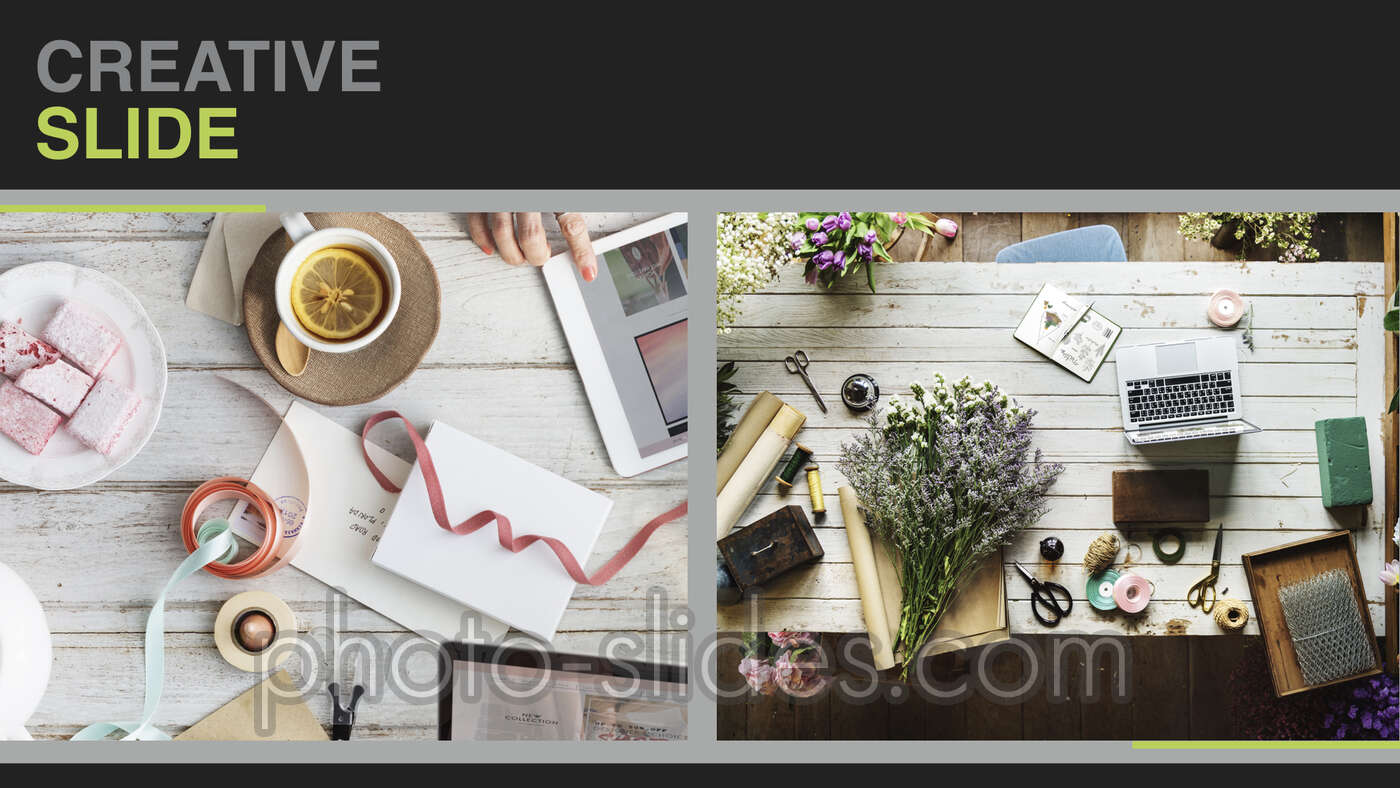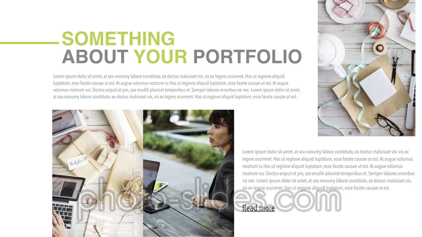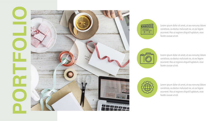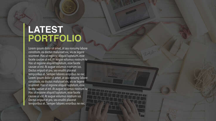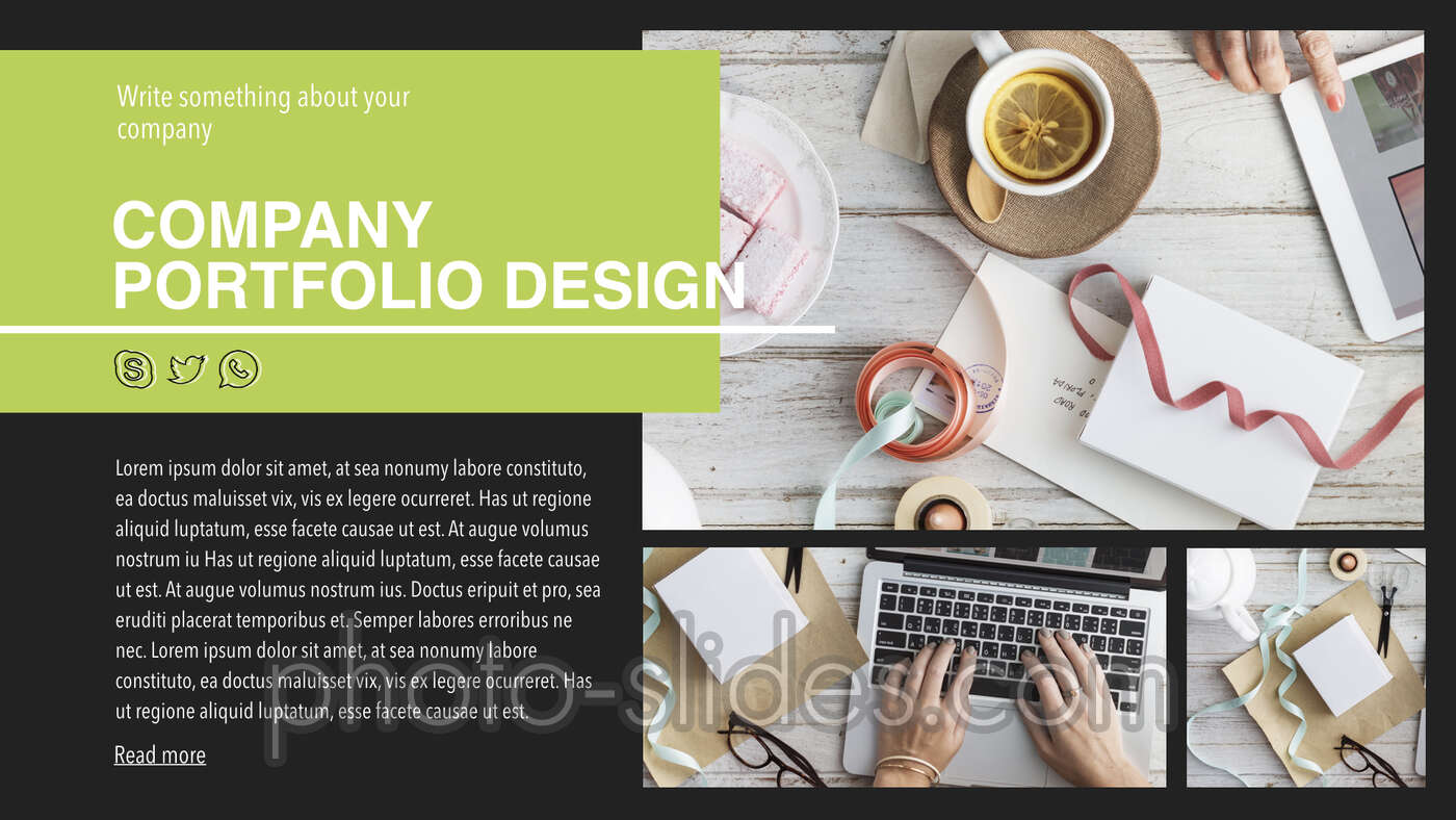 KeyNote Presentation document file "Creative Portfolio" with fully complete slides for your photos, attractive slide and object animations, text and media placeholders designed by professionals. Documentation on using the presentation in different ways: screen viewing, social video sharing, printing cards, books or posters. Links to additional fonts or other resources to download and use them for FREE.
