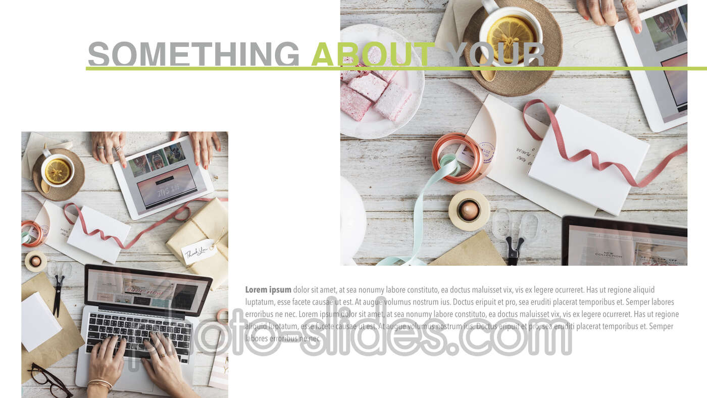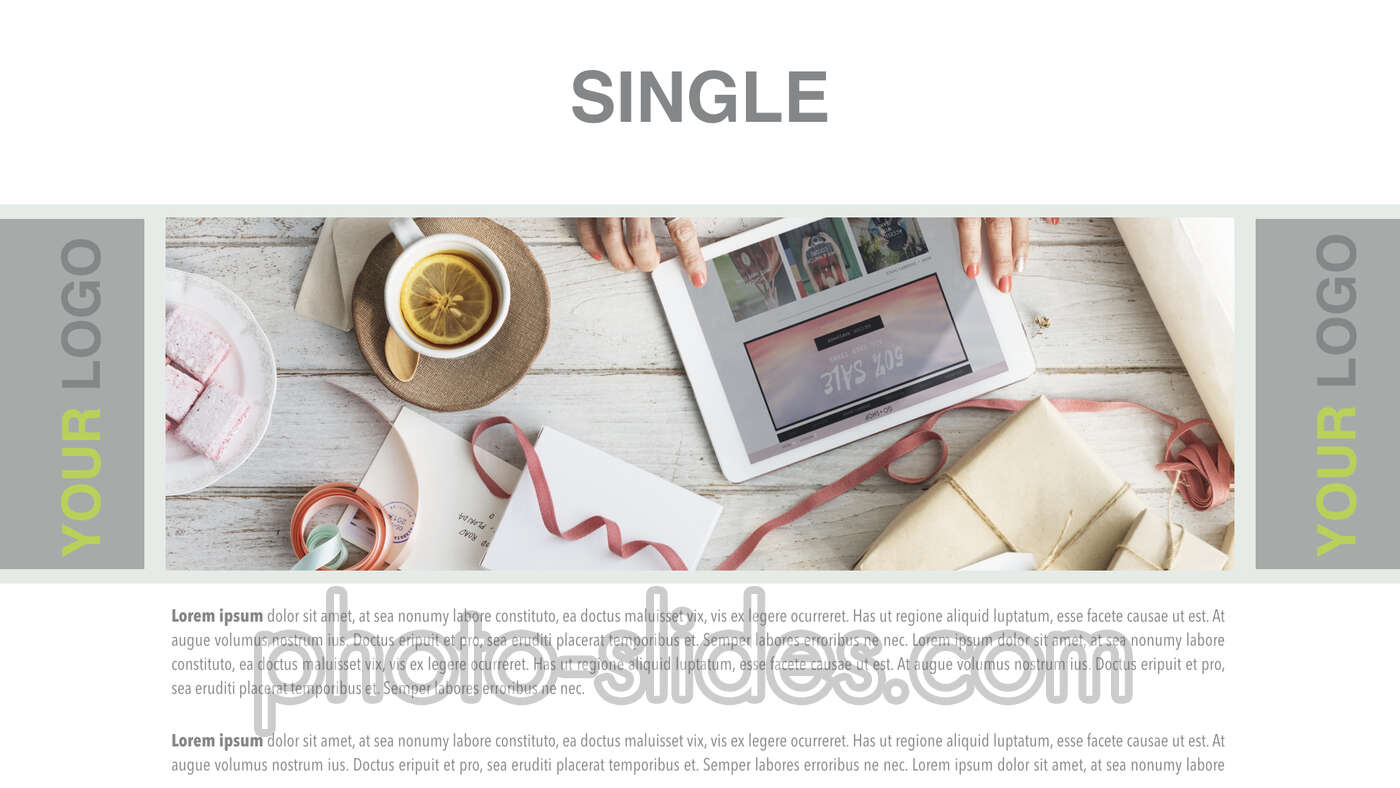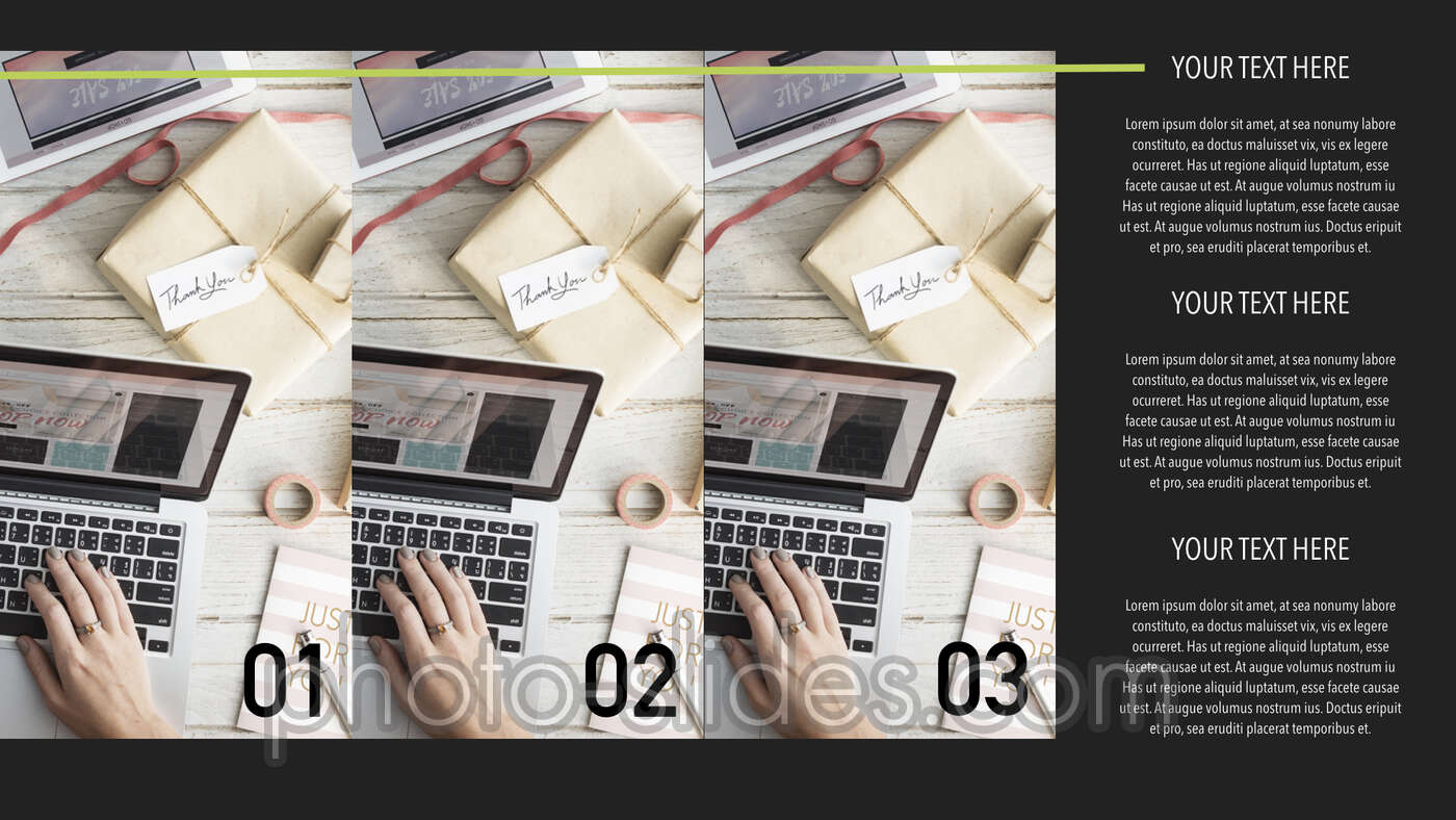 Suitable for those who want to show and save their photos in a simple yet spectacular way. All you need is to place your photos into the frames on the presentation slides. The presentation includes unique pictures and attractive objects animations.