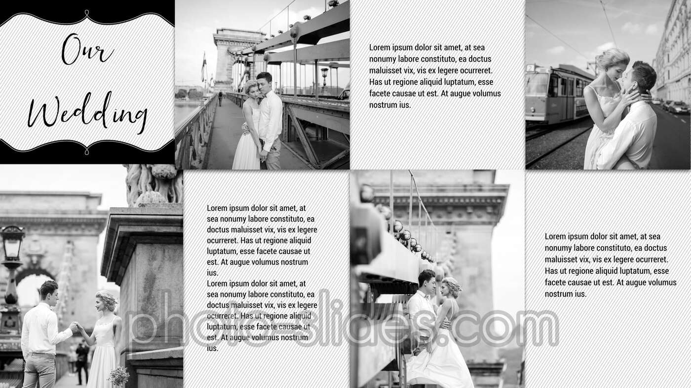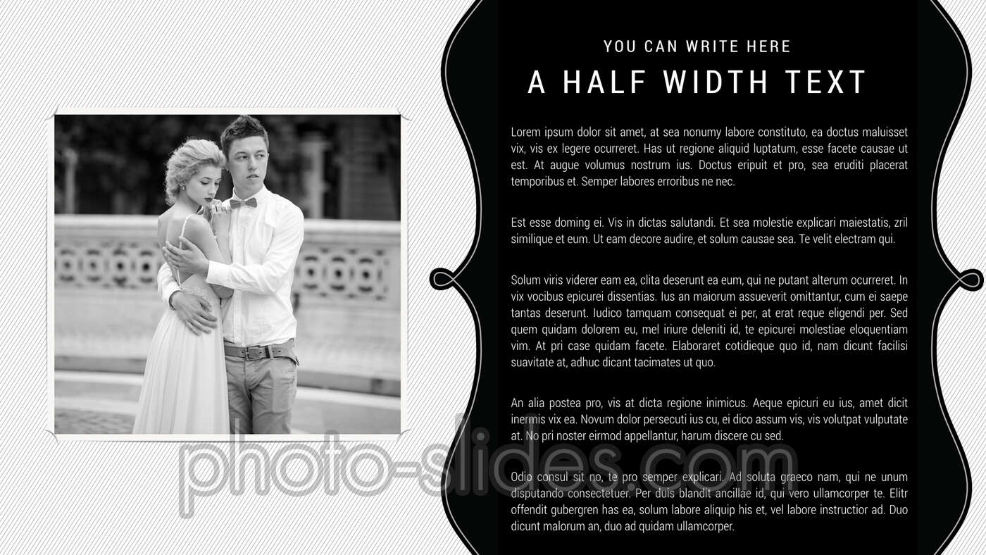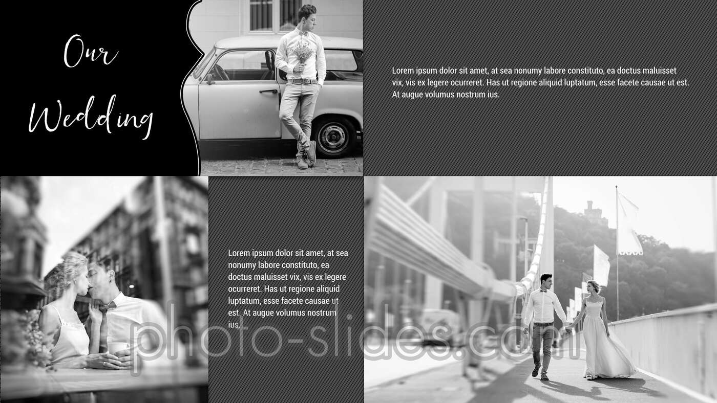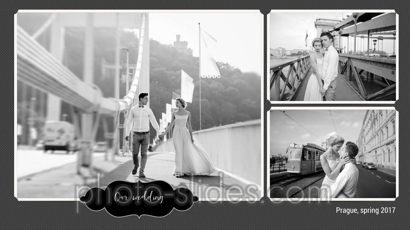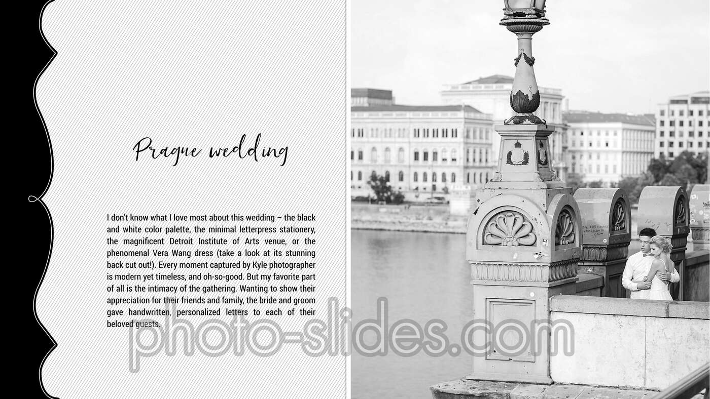 Keynote Presentation document file "Wedding Modern" with fully complete slides for your photos, attractive slide and object animations, text and media placeholders designed by professionals. Documentation on using the presentation in different ways: screen viewing, social video sharing, printing cards, books or posters. Links to additional fonts or other resources to download and use them for FREE.