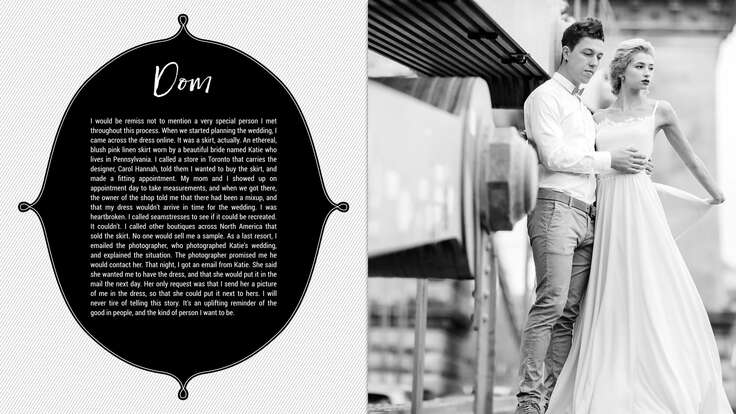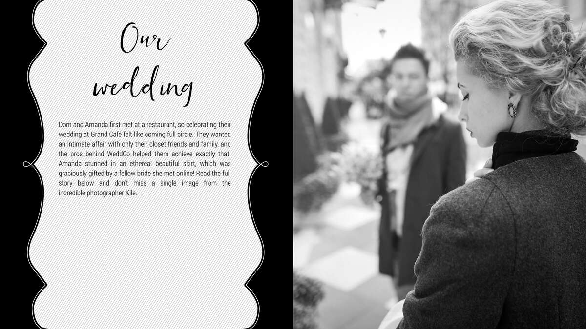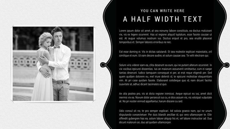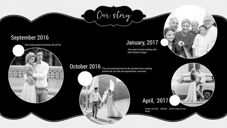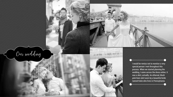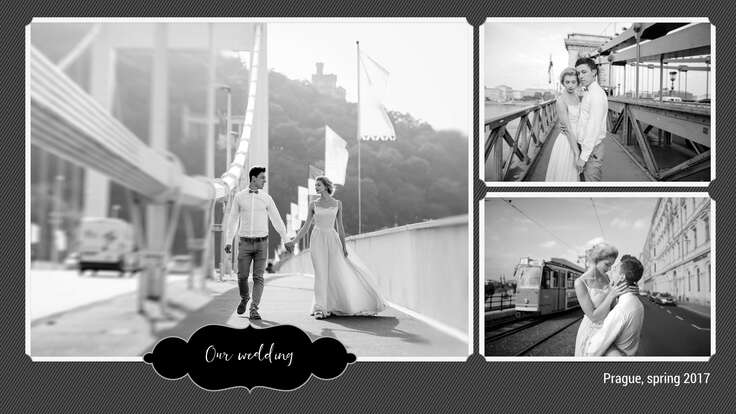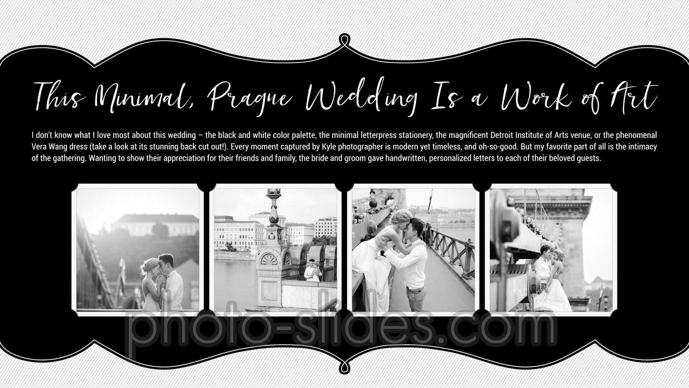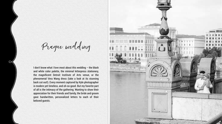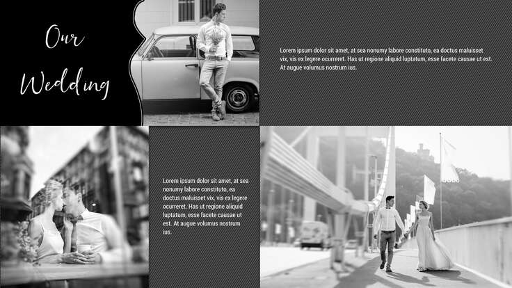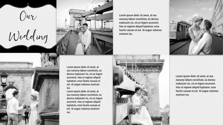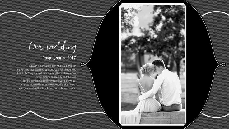 Keynote Presentation document file "Wedding Modern" with fully complete slides for your photos, attractive slide and object animations, text and media placeholders designed by professionals. Documentation on using the presentation in different ways: screen viewing, social video sharing, printing cards, books or posters. Links to additional fonts or other resources to download and use them for FREE.