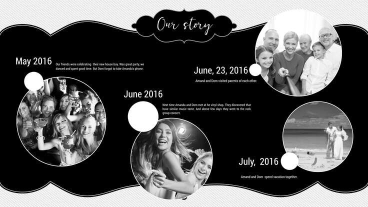 Suitable for those who want to show and save their photos in a simple yet spectacular way. All you need is to place your photos into the frames on the presentation slides. The presentation includes unique pictures and attractive objects animations.